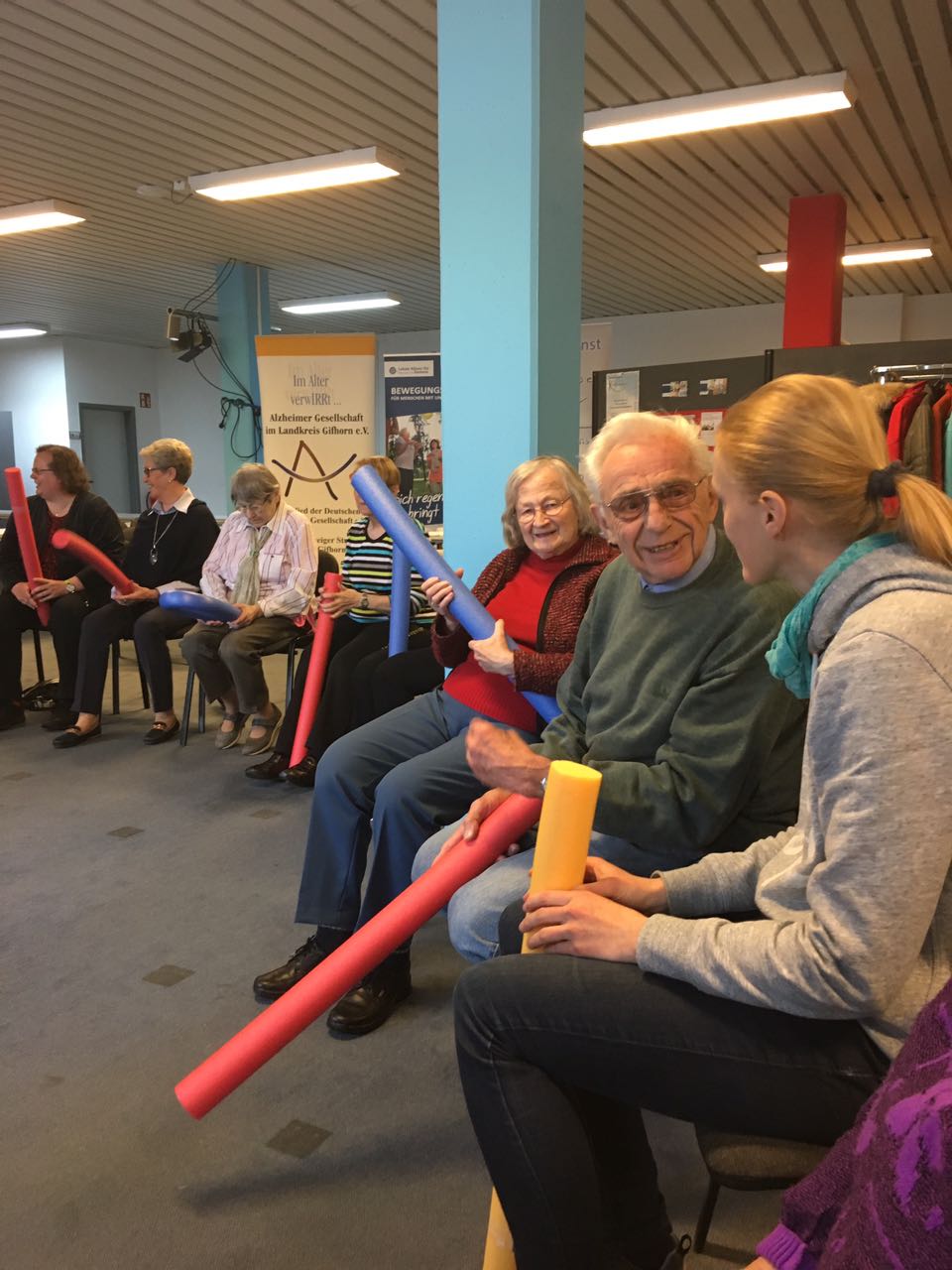 Nach der Bewegung kam der Austausch. Die 1. Vorsitzende des Seniorendienstes Kümmern und So e.V. Frau Elisabeth Kruse-Schraknepper stellte Frau Ingrid Pahlmann den Verein und die Lokale Allianz für Menschen mit Demenz vor. Mit Frau Korte von der Alzheimer Gesellschaft im Landkreis Gifhorn e.V. wies sie auf die Herausforderungen hin, die das Thema Demenz in Zukunft auch im Landkreis Gifhorn schafft.